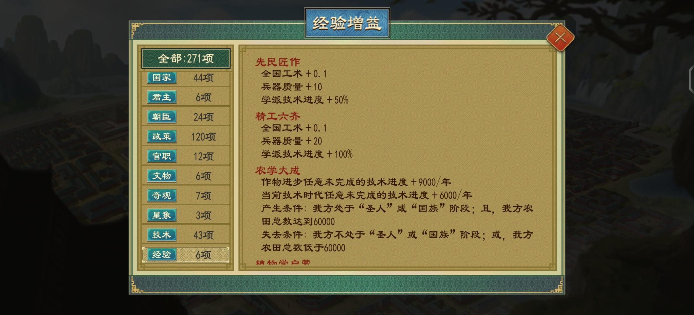 如图旧档建了一千三百多4级学校,点完儒家下方右侧4个政策直接18万/年的技术进度,这还只是圣人阶段,以后图2的政策必点了,神中神。法家的政策部分增加了降盗风的增益,还有一部分增益适合西汉剧本。