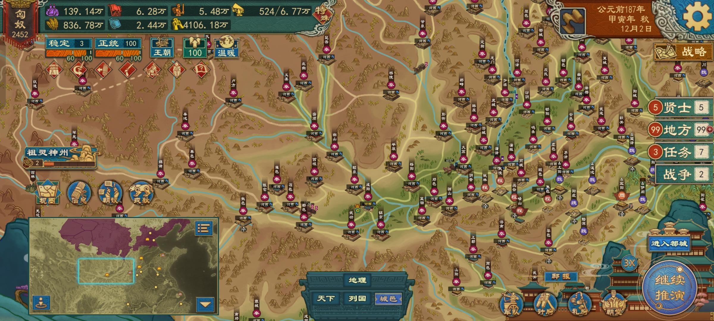 每次用名分(统一四海),以小博大,一下子吃撑了,复国,判心,骚乱都还能忍,粮食收不上来啊,要过多久才能收上来啊,不然国家体量到了,只能用统一名分,兼并名分时间太长,打起来太心累了,每次这样都想放弃存档了