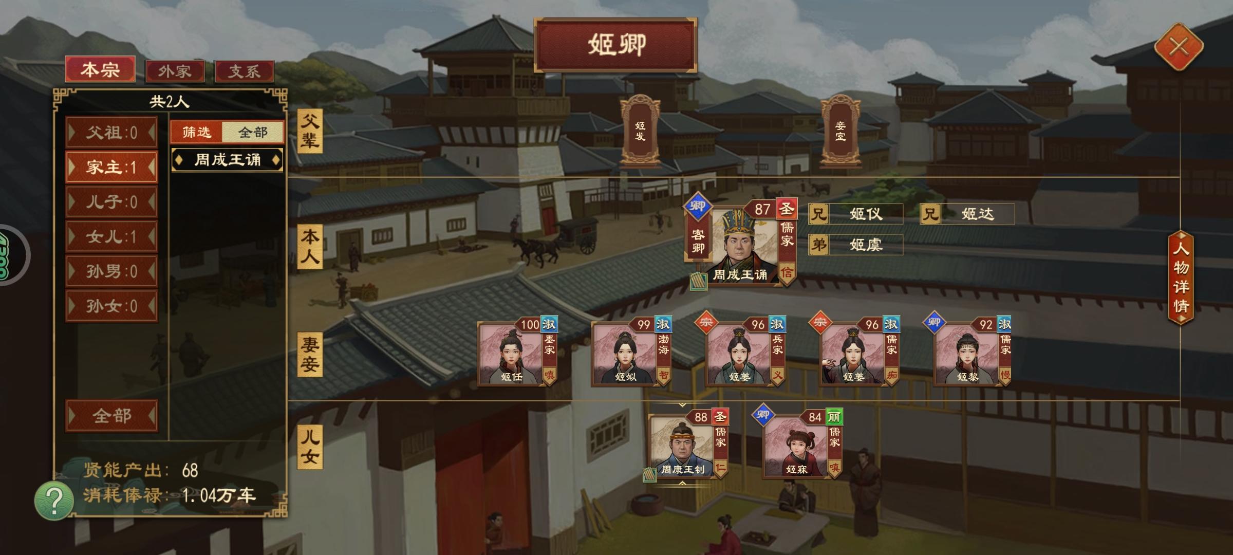 显示在地方闲散,点开一看地方家族查无此人另外都拜成王为卿为什么他一个家族的人都不过来呢姬姓的怎么拜一个才来一个(后面拜召公也是)他们明明显示一个地方家族的啊我拜楚王熊氏一来五十人我拜商帝子氏一来一百人为什么姬姓一来就一个人?(图二是拜卿前,图一是拜卿后,剧本是文王治岐)