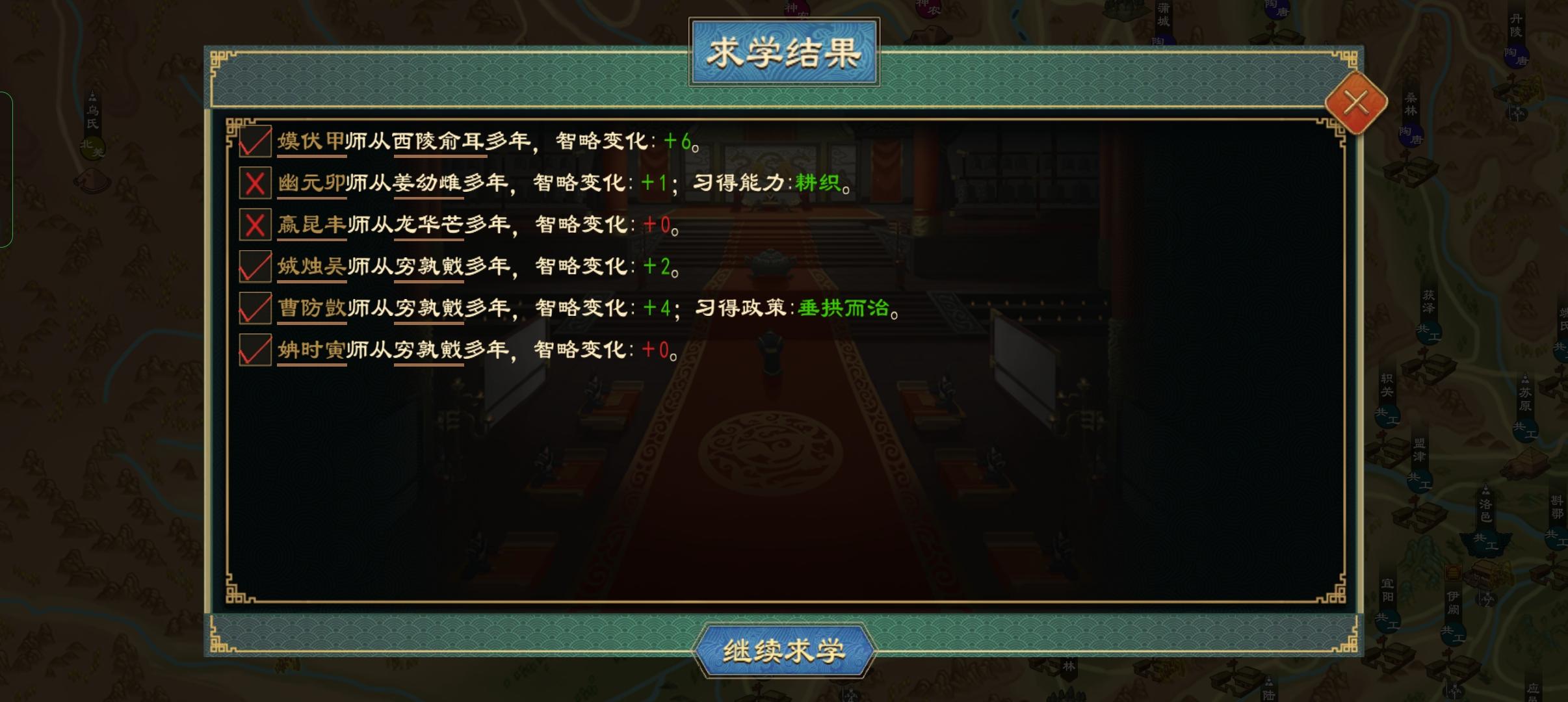 这让卿室上位还挺麻烦,不仅正统底于60以下,无宗室子弟继承(公室也不行,多了诸子之乱,少了正常继位),就算只剩下了卿室,如果有同姓但不同氏卿室,那就只呈现同姓的,图里就只呈现了子姓的乐氏、皇氏和华氏,没有嬴姓赵氏(无论有没有血缘关系,只要同姓就会显现),我还是把那几个同姓全部流放了赵氏才显现了(话说最后那张图是我君主死在遗迹后,我暂停了一会他就直接变成正卿了???)p