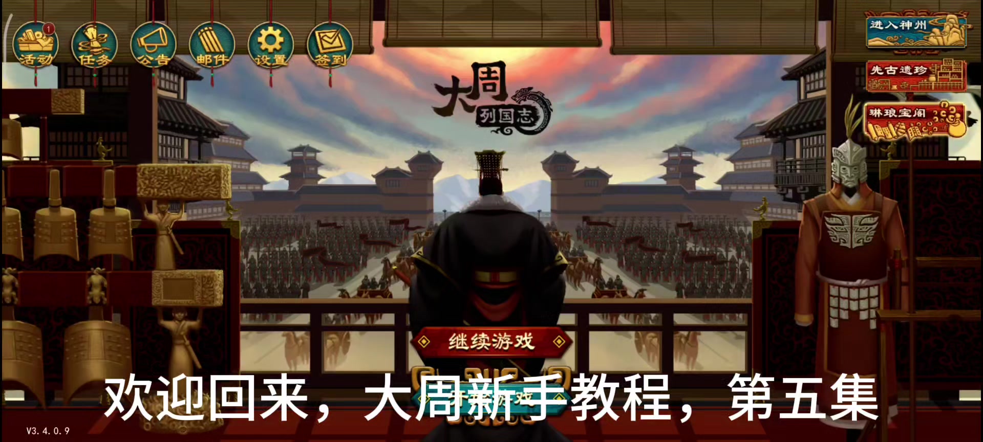 1.开始游戏2.选择剧本年代-上古等3.选择角落国家(非四面都有国家,打架起来,不能发育)4.发育篇:4.1 直接去驿站找游女,多找几个结婚,后面可以给兄弟封地(旁观者模式没用,AI自毁流放),【分封封地作用:分割战场,避免1打多,避免自己领土与多个国家接壤导致冲突打架,前期最重要的是发育。】4.2 招贤臣,集贤-招募令这里10连抽梭哈,有2-3个紫色就行了,前期顶用,后期发育起来绿色的