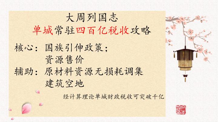 #大周列国志 大周列国志,单城财政四百亿税收攻略,理论税收可突破千亿,及资源无损耗调集攻略