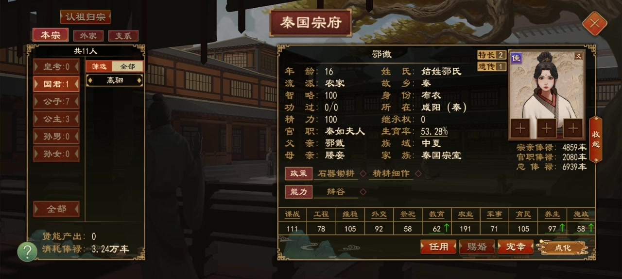 令尹制令尹:实施各种已解锁的政策司败:教育+施政 效果:减全国骚乱(最大为-14)大尹 :施政 效果加施政效率(最大为+28%)左徒:施政 效果:令尹+增加贤能产出(最大为+20%)莫敖:维稳+外交 效果:减附庸独立性(最大为-7)三阁大夫:祭祀 效果:加国家正统(最大为+14)工尹:工程+育民 效果1:加全国城邑格局(最大为+0.35)[不开启战力资源系统了效果2:加