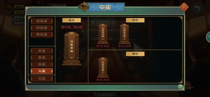 目前游戏内使用多种爵位制度,并且存在混用的情况:第一类是国家的爵位,除匈奴族域外采用周制(无男爵)并增设帝爵,即子→伯→侯→公→王→帝,(这个没什么好讲的,继续保持)。第二类是家族的爵位,分两个时期,郡制帝爵和非郡制或郡制未升帝爵,郡制时期独有七种爵位,首先是卿室家族的爵位:勋→亭侯→乡侯→县侯→郡侯→宗王/封王,拜卿(需为成年男性、功勋等于大于10、至少有一个儿子)成为勋后可以点击灰色区域选
