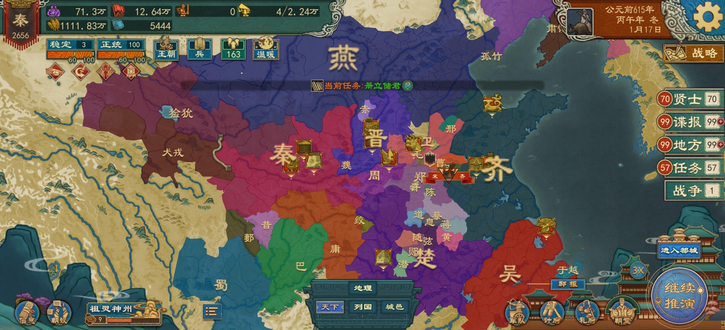 对手已经是圣人阶段了,我还是个野人最厉害的军队就是弓兵,对面有最厉害的车兵还有数10万的大军,我目前已经准备开新档了,主要就是想模拟秦国小国逆袭,其实更爽的还是种田和治国的感觉已经没有遗憾了,属于是,再过两天大更新不就来了嘛,我打算去西汉新朝那里试一下军阀玩法