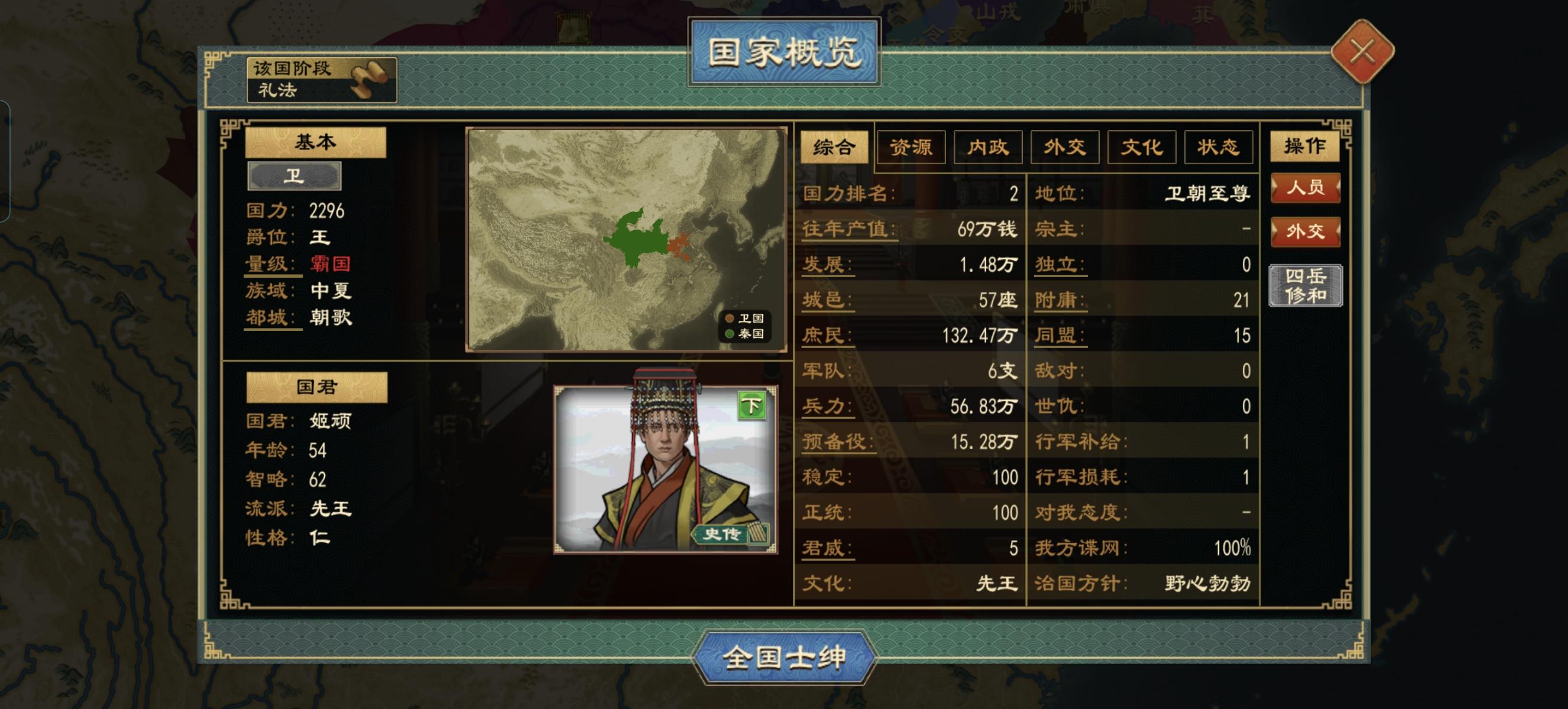 萌新,想问一下怎么打这个卫国好点?它好像是和周朝合并了,然后十多个附庸,我怕一宣就被十多个国家一起打