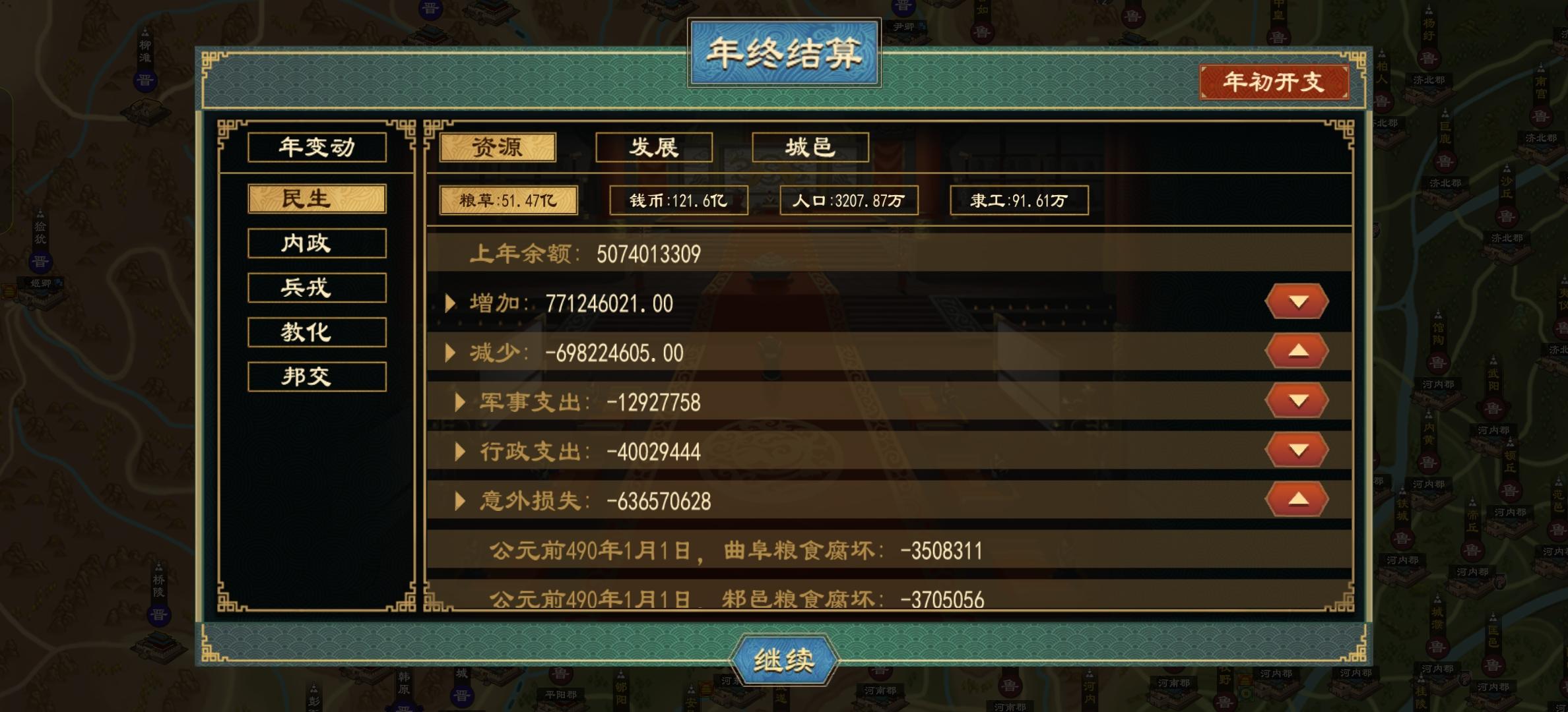 如图所示,连着玩了两个档都遇到这种情况就是ai不再扩张,玩到一半推演到某个时间节点后世界上除了晋国之外,几乎所有国家都不在对外进行战争了,连着种了十几年的田,自己不发动战争#,世界就是一片和平,这还玩什么呀。上一个档更狠连着二三十年世界一片祥和除了最强大的周国,其他所有国家都不再动了,现在开新档又遇到这种情况。本来就是因为西汉本太无聊才玩春秋,结果辛苦发育上百年又遇到这种情况,太恶心了