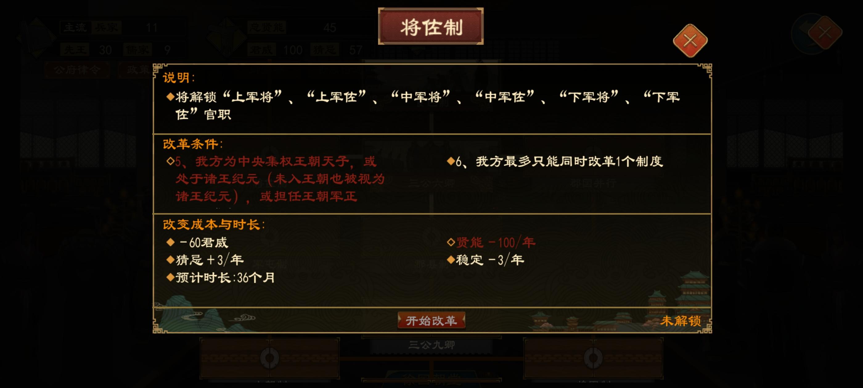 【东汉三国系列大改!🥰】庙堂更新为①割据州势力朝堂以整个州为核心②割据郡势力朝堂以郡为范围③割据县势力朝堂以县邑为据点④割据尉势力朝堂此势力参考【京畿】司隶校尉⑤【出镇公卿/藩王势力朝堂】割据公卿势力包括公族,卿族。超过12个官职位置🥰国相国傅内史郎令中尉大府小府大卫太御作士鸿胪司