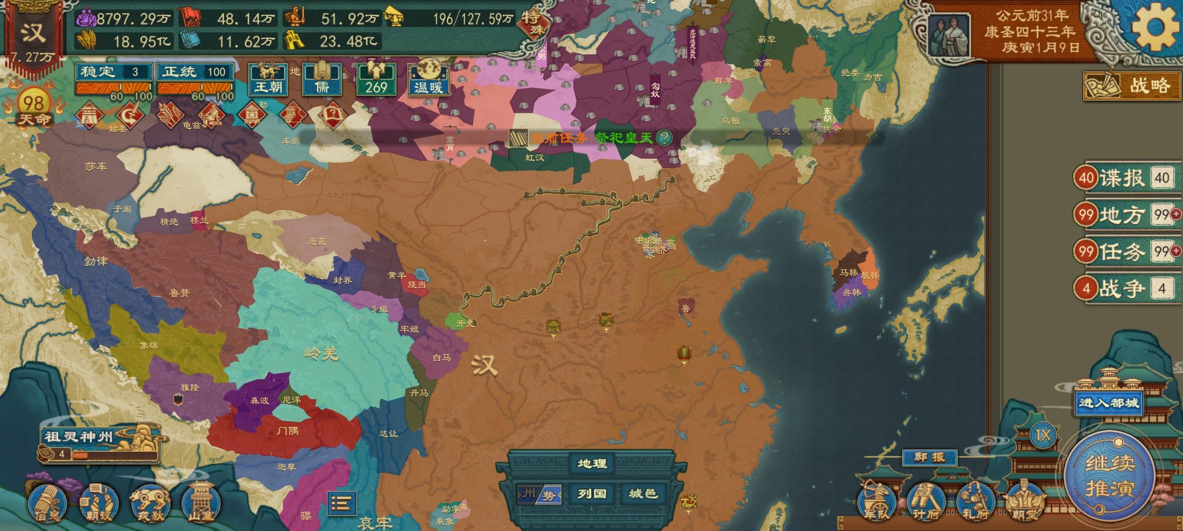 遮挡感觉废了。跟汉统一四海换了两次家,一点粮都没了,厌战还贼高