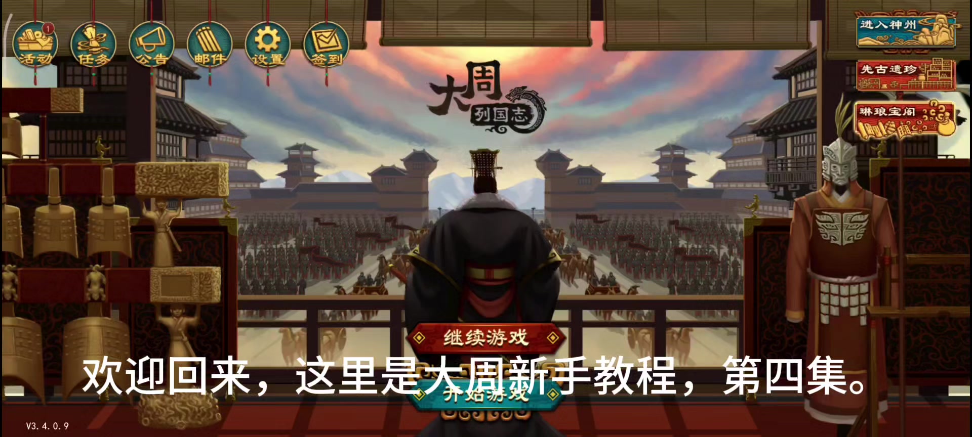 1.开始游戏2.选择剧本年代-上古等3.选择角落国家(非四面都有国家,打架起来,不能发育)4.发育篇:4.1 直接去驿站找游女,多找几个结婚,后面可以给兄弟封地(旁观者模式没用,AI自毁流放),【分封封地作用:分割战场,避免1打多,避免自己领土与多个国家接壤导致冲突打架,前期最重要的是发育。】4.2 招贤臣,集贤-招募令这里10连抽梭哈,有2-3个紫色就行了,前期顶用,后期发育起来绿色的