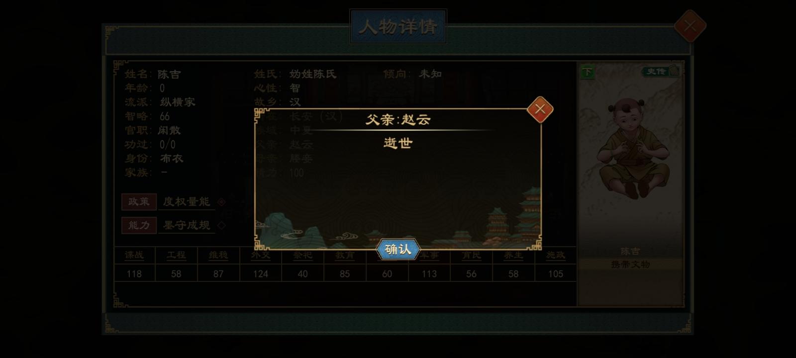 看到网络上的大家一直在贡献攻略,这里寡人也来聊一下首先,现阶段的六个圣人位置,推荐带管仲,孙武,墨子,邹子,老子,扁鹊玩上古时期剧本的铁铁,可以把老子和扁鹊的生年改后五十年,前期用不上,等进入方国阶段点政策的时候再来来说下为什么推荐这几个圣人1.管仲朝堂制度:三揆六工任职:司士维稳200,施政200,即可每年减10点都城骚乱管仲这个圣人虽然说事件一局触发不了几回,但