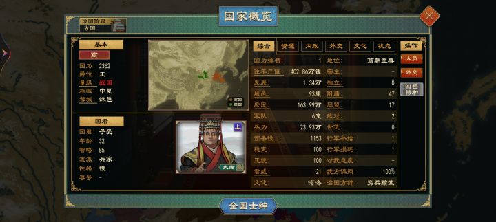 国族阶段点满政策的我,和圣人阶段点满政策的我,对比的话,哪个国家的国力更强一些?#游戏日常 #大周列国志
