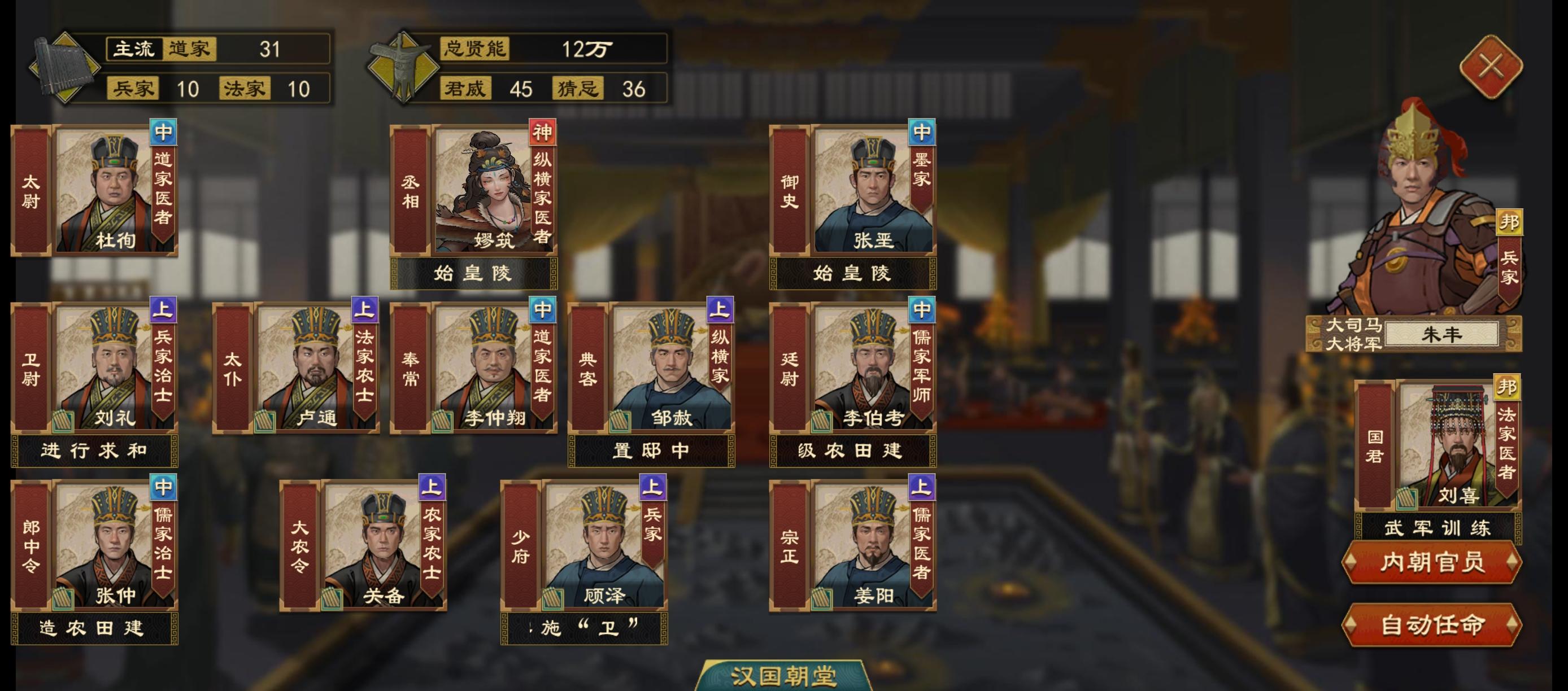 不是,那我缺的军佐制和三支部队谁给我补啊,想玩完全体国族还得去楚汉开打吗还是七国之乱cos诸侯王啊,这个国族阶段有办法退吗