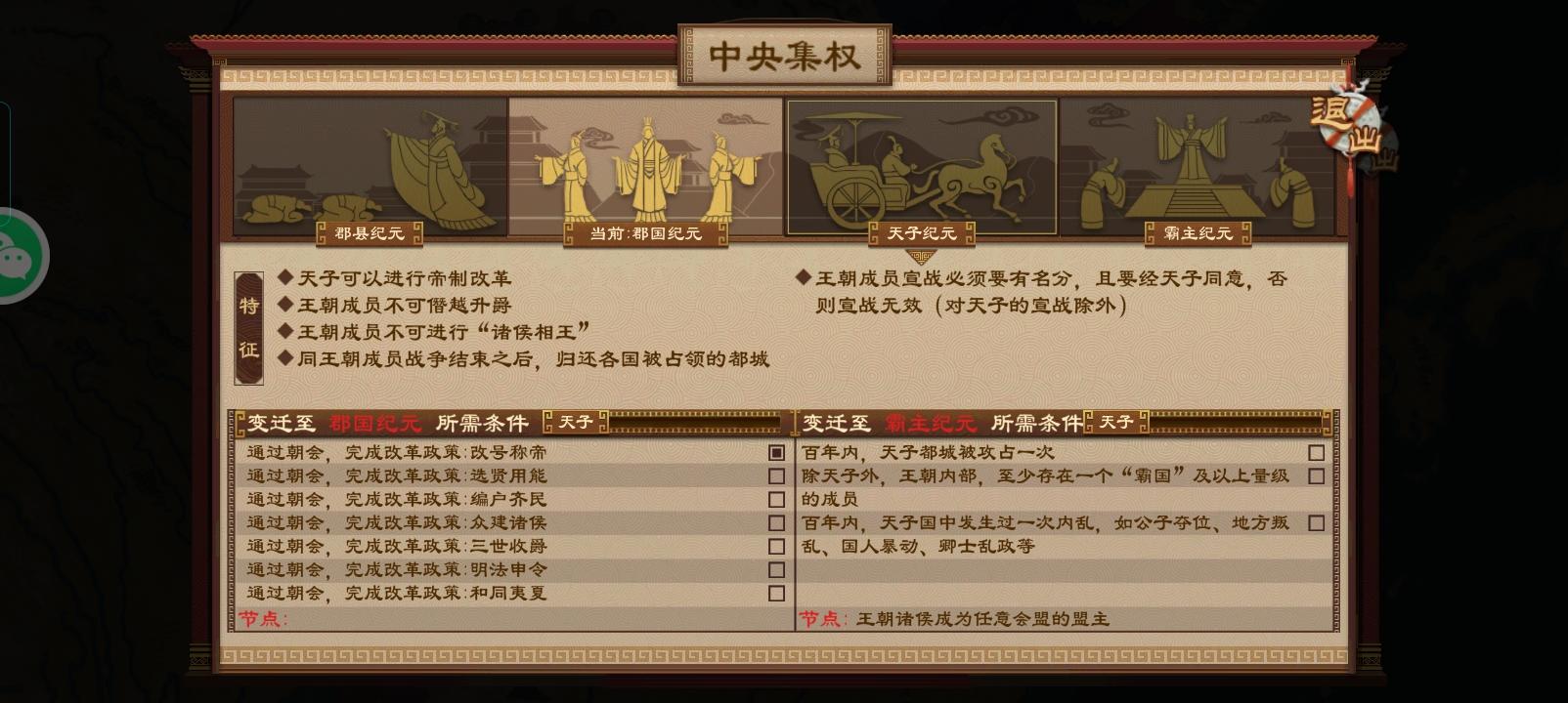 #大周列国志 不知道是不是遇到bug,我在秦势力的几分钟前,我做的郡国并行制刚好,灭秦后,我就点击建国,谁知道直接成皇朝了,我连王朝改革都没有干,就直接进入郡国纪元了,要不是显示秦皇朝灭亡,我都没发现进入郡国了