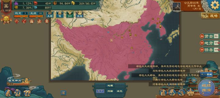 令尹制令尹:实施各种已解锁的政策司败:教育+施政 效果:减全国骚乱(最大为-14)大尹 :施政 效果加施政效率(最大为+28%)左徒:施政 效果:令尹+增加贤能产出(最大为+20%)莫敖:维稳+外交 效果:减附庸独立性(最大为-7)三阁大夫:祭祀 效果:加国家正统(最大为+14)工尹:工程+育民 效果1:加全国城邑格局(最大为+0.35)[不开启战力资源系统了效果2:加