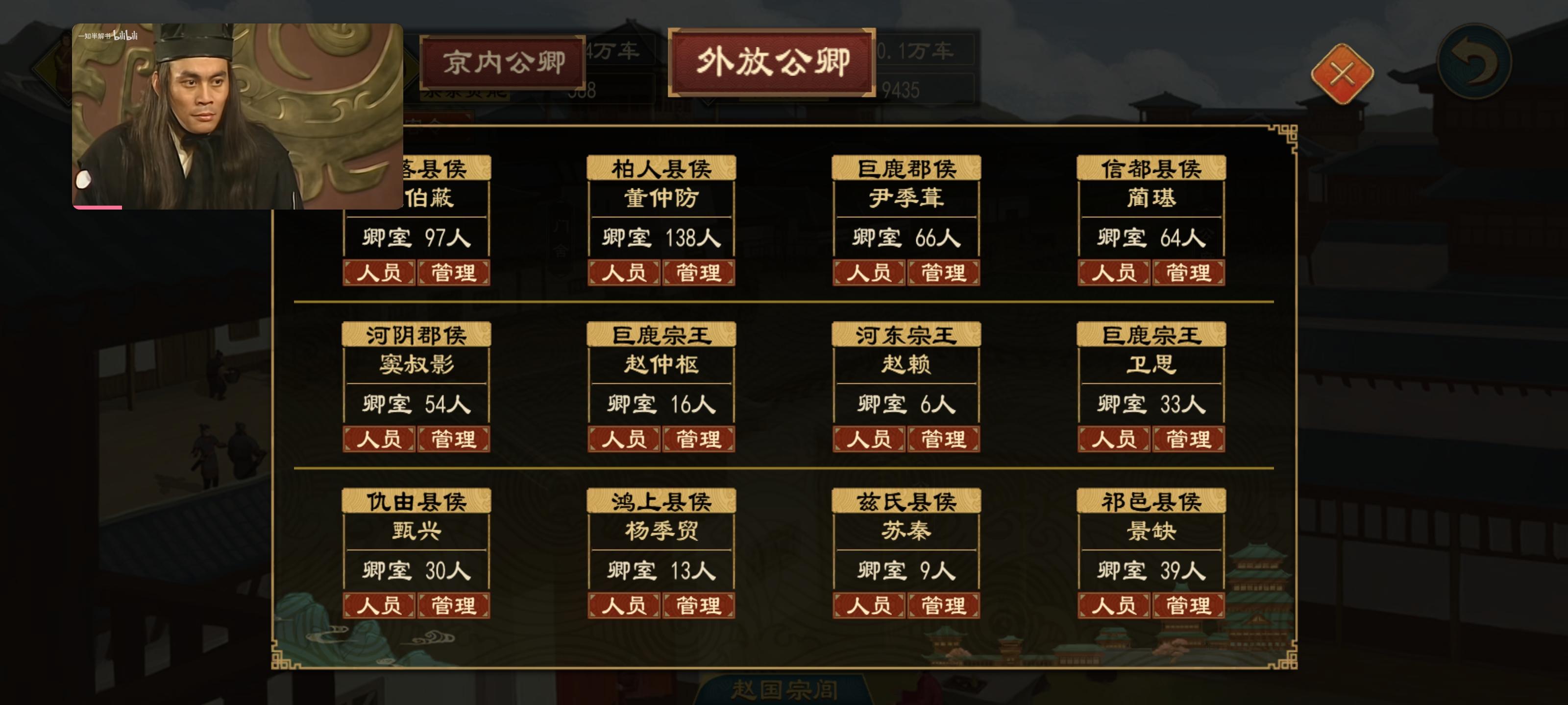 【东汉三国系列大改!🥰】庙堂更新为①割据州势力朝堂以整个州为核心②割据郡势力朝堂以郡为范围③割据县势力朝堂以县邑为据点④割据尉势力朝堂此势力参考【京畿】司隶校尉⑤【出镇公卿/藩王势力朝堂】割据公卿势力包括公族,卿族。超过12个官职位置🥰国相国傅内史郎令中尉大府小府大卫太御作士鸿胪司