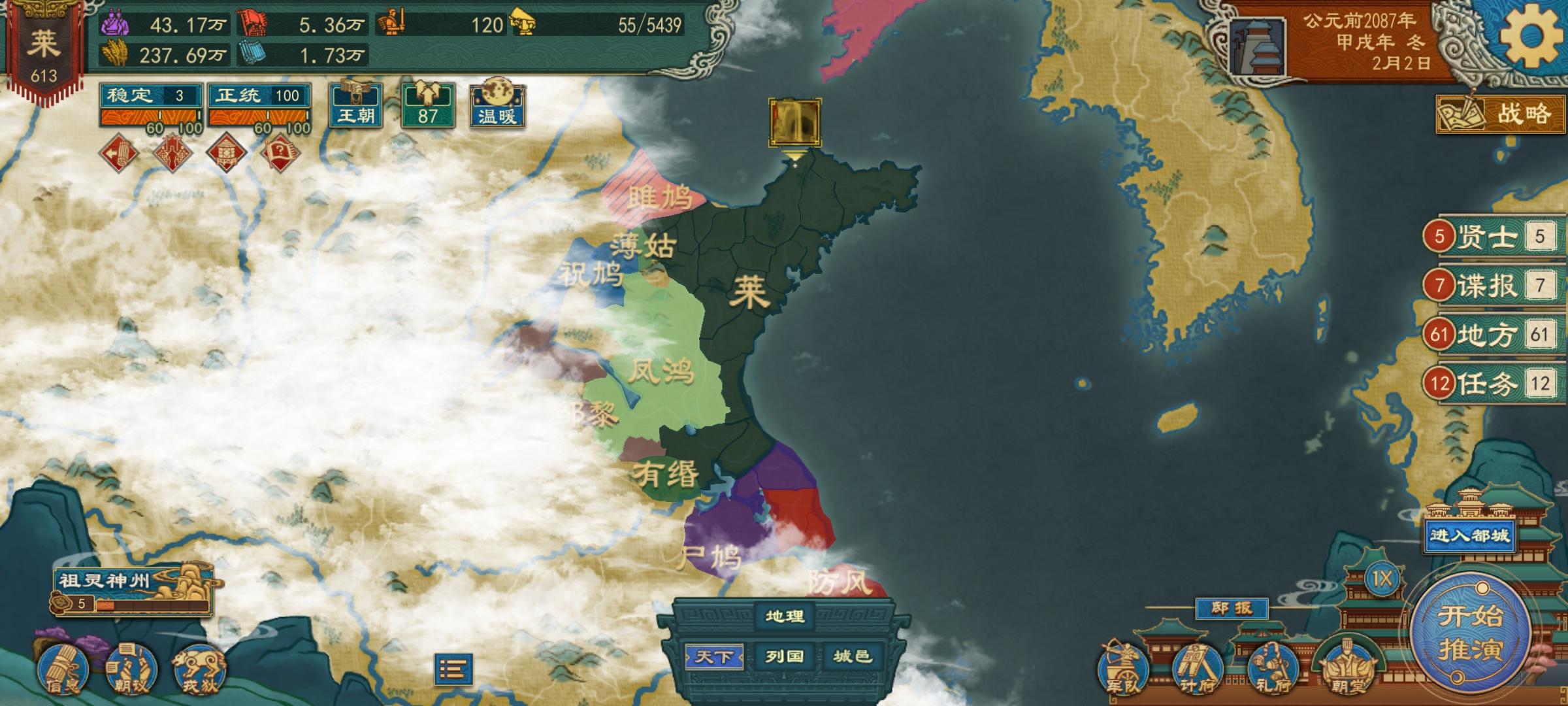 如图所示,连着玩了两个档都遇到这种情况就是ai不再扩张,玩到一半推演到某个时间节点后世界上除了晋国之外,几乎所有国家都不在对外进行战争了,连着种了十几年的田,自己不发动战争#,世界就是一片和平,这还玩什么呀。上一个档更狠连着二三十年世界一片祥和除了最强大的周国,其他所有国家都不再动了,现在开新档又遇到这种情况。本来就是因为西汉本太无聊才玩春秋,结果辛苦发育上百年又遇到这种情况,太恶心了
