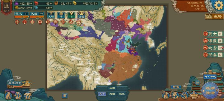 遮挡感觉废了。跟汉统一四海换了两次家,一点粮都没了,厌战还贼高