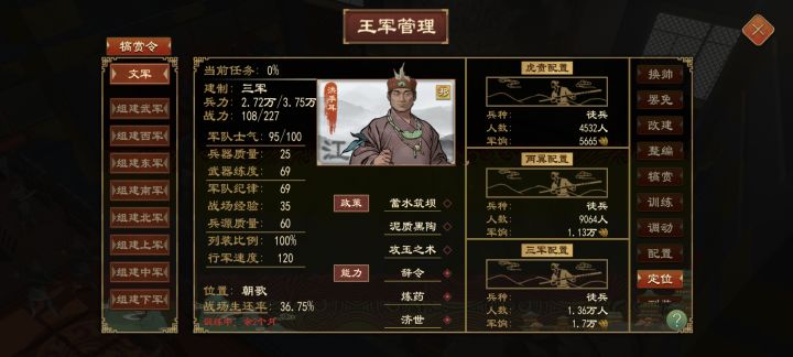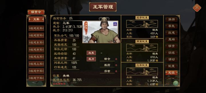 令尹制令尹:实施各种已解锁的政策司败:教育+施政 效果:减全国骚乱(最大为-14)大尹 :施政 效果加施政效率(最大为+28%)左徒:施政 效果:令尹+增加贤能产出(最大为+20%)莫敖:维稳+外交 效果:减附庸独立性(最大为-7)三阁大夫:祭祀 效果:加国家正统(最大为+14)工尹:工程+育民 效果1:加全国城邑格局(最大为+0.35)[不开启战力资源系统了效果2:加