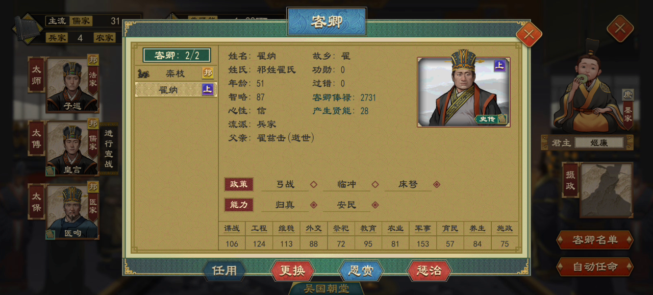 门客虚弱后任命官职(包括客卿)就会没有了虚弱状态,然后把他罢免重新当回门客后就会立刻又虚弱,然后过一个月就直接死掉,这是不是游戏bug还是特色?