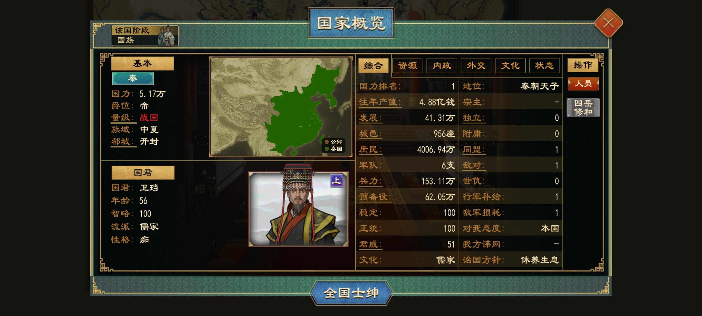 不知皇位换了多少次,一切推倒重来多少回,玩久了给我的感觉,就像孤魂在历史长河中游荡,没有情怀,没有偶然,冰冷的数字、繁琐的操作之后,想看看史传感怀打发一下时间,还是一如既往的没有提示。孤独无依的心如何才能得到抚慰 祖宗之法不可变,我是不进国族的那一类,一直留在圣人阶段,所以真的不能不废政策进国族?即使天下海清河晏久已,钱币也不够我财政支出的一个零头。民需玩过后,发现即使全国这么多人口的