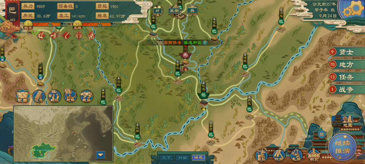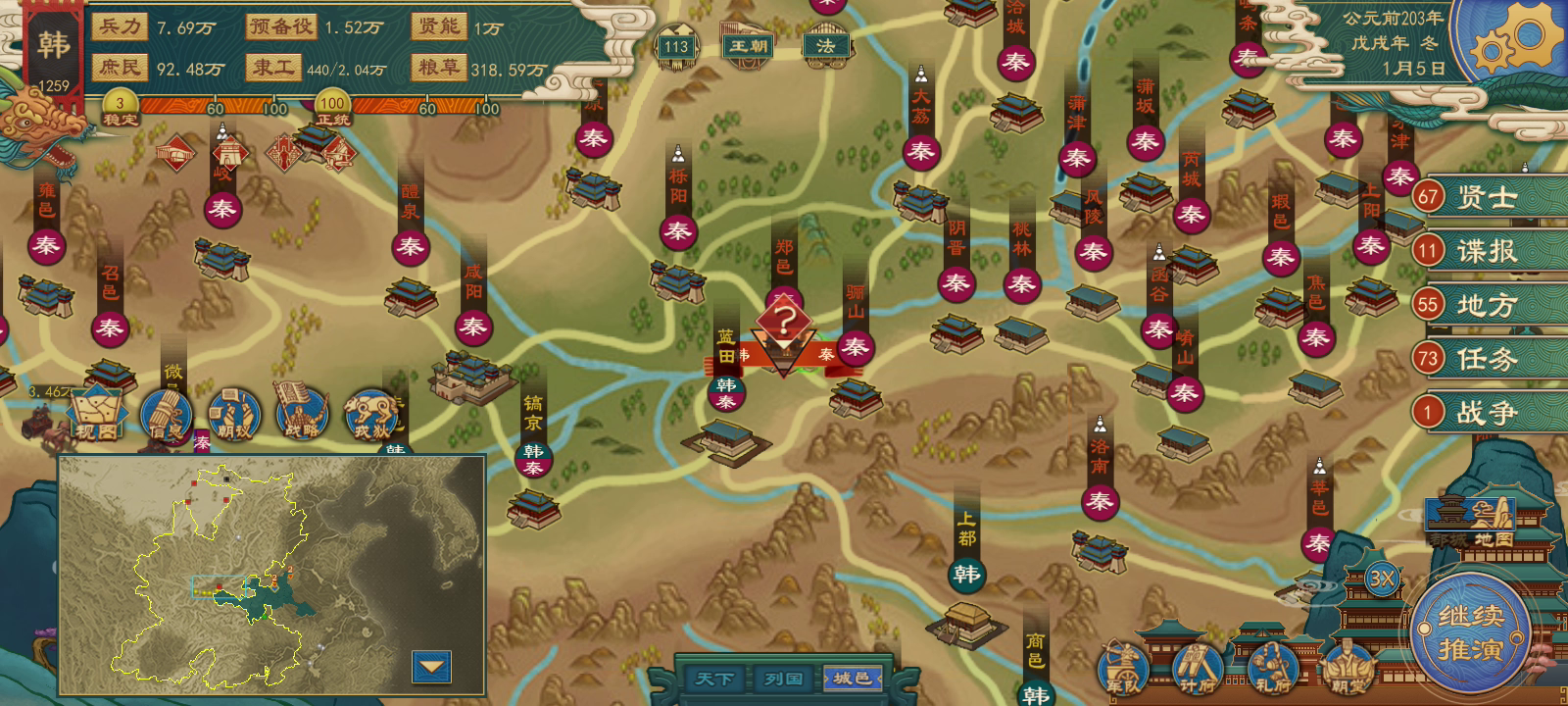 封测玩到现在,每次用小国都是破局建了王朝以后觉得没意思就重新开档没试过统一,难得这次耐着心去打统一,后面够400城手贱点了发布诏书,分封了我一大波地😭😭分了就算了,连兼并土地和统一四海的宣战名分都没了,气得我直接劝进王道全分封出去算了😡😡