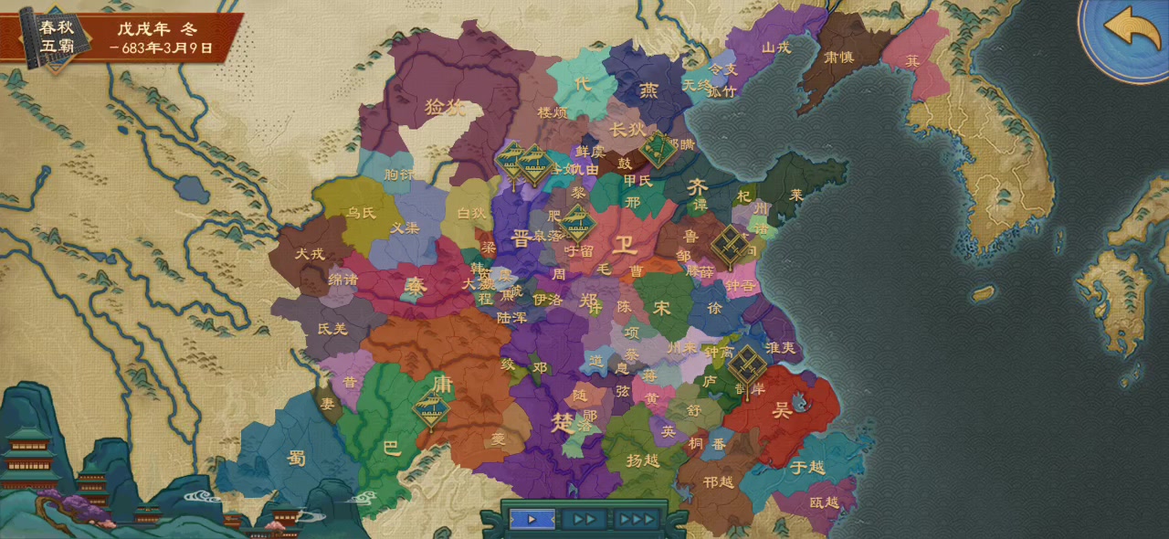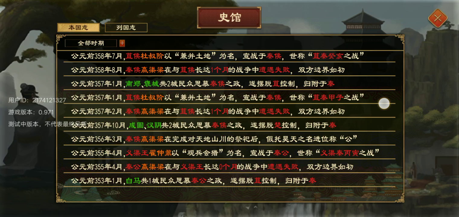 历经五位国君终一统天下,前期开局要搞好周边国家关系能结盟联姻最好,然后就是休养生息发育,流派我选的兵家医家农家(也可以根据自己来),中后期要脱离宗主国周然后想打谁打谁,不过国内厌战和骚乱不能高