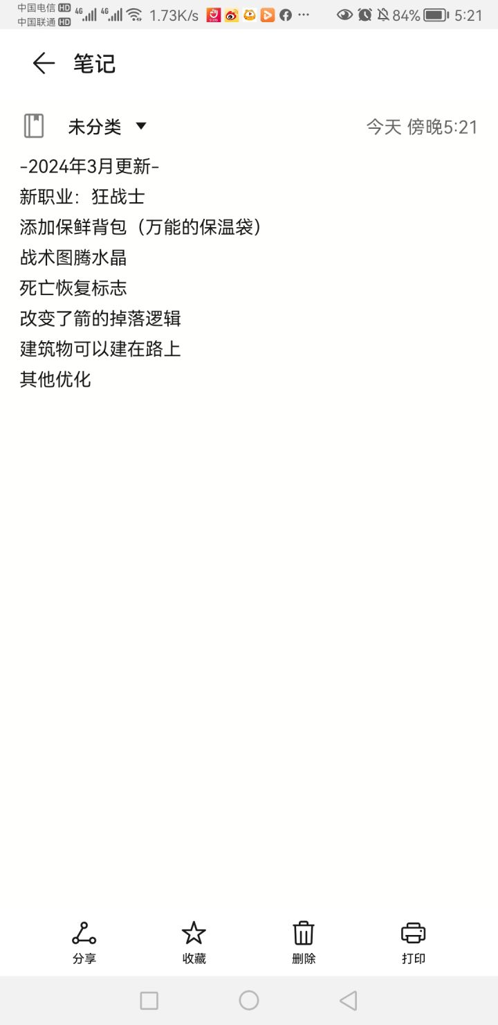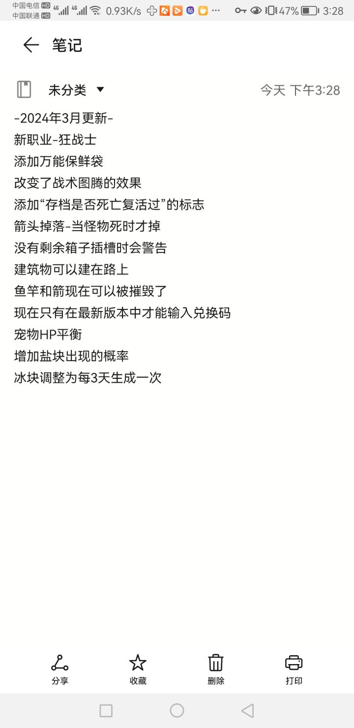 2023年3月更新开放困难游戏模式更改了部分地图结构(很多地图不再有水坑)修改了能量系统(制作耗蓝增加)增加了新的怪物(水蜥蜴,水边恶童等)修改了一些boss技能(食人魔可以恐惧你,让你瞎跑)平衡魔法技能制造时消耗的回合(设施,道具都消耗回合)在有水的地块上移动会减速建筑更容易损坏(特别特别容易坏)概率得到进化的遗迹。(可以额外获得一个新的制作配方)调整-增加修理工具包项目