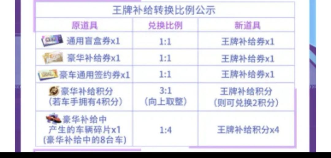 新赛季大家也都知道了,豪华补给积分会3:1折算成王牌补给积分,而车辆碎片会1:4折算成王牌补给积分。 那么换车辆碎片到底是亏是赚呢 先说结论,换碎片小赚,但不多。 以6000纪念币(差不多一个588多一点)为例,现在盲盒券是三元一抽,那么6000币正好是200抽,现在豪华补给一抽给3积分,而一个十连能给33积分,假设全部十连抽取 ,就是660积分,这660积分恰好能换成 66个车辆碎片,在现在的补