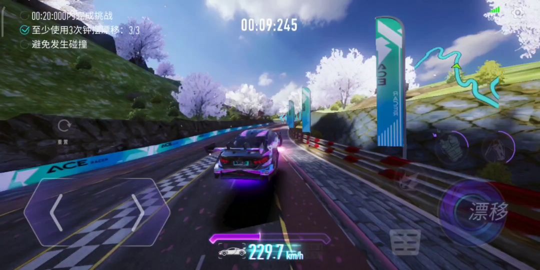 花了20来分钟终于过了,写下跑法。 ①开局点开始后立马轻点一下刹车降速(高手忽略请第一步),②进行三次钟摆漂移,在入第一个弯道前完成,顺序左飘,右钟,左钟,右种,这样第三个钟摆车头对准入弯口。③正常跑,手刹漂移入弯后记得反方向点一下手刹漂移(超级涡轮操作方法),取消掉车轮打滑并调整车头,这样车不会因为打滑撞弯道,!推荐使用宝马m4,技能灵活转向,,,我用的一级m4,,10级m4感觉马力太大,冲太猛驾驭不了就召回了,,,