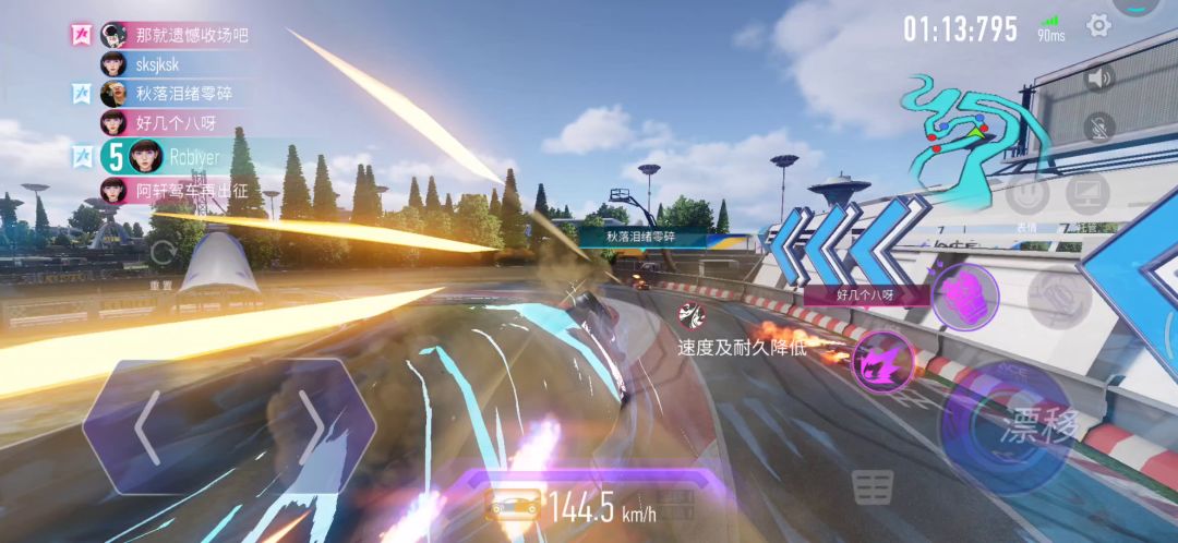 手机:荣耀x10(有些掉帧) 最高段位:漂移大师2 车辆等级:9级 氮气选择:2*3 芯片推荐:菱形增幅+汇能+跃动 顺便说一下当前王牌竞速几个问题:1.芯片副属性刷团魂和汇能,导致高段位全图大招,建议限制每圈大招次数或者取消芯片副属性。2.设置最高速度为399,玛莎和720s有时候都飙上400了严重超模。 3.完善回放功能,出一个多角度回放,类似于狂飙9。