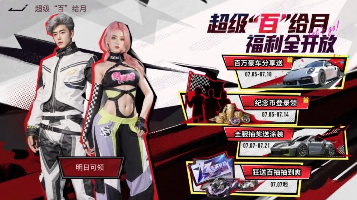 《王牌竞速》“百”给月,福利全开放!免费百抽,百万豪车911等你来提!