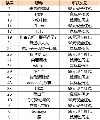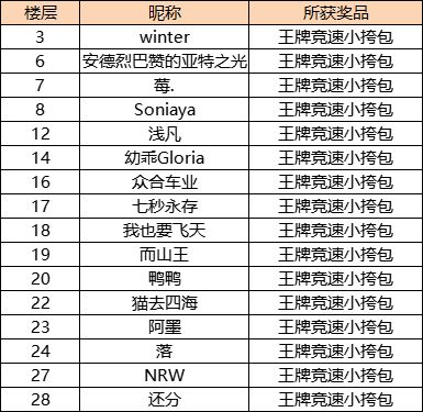 中奖名单:恭喜以上幸运车手中奖!~车手们可以在【个人中心—回复栏】查看自己的楼层数,另外西理会将奖励领取的方式回复在中奖楼层之中哦!(7个工作日内没有联系工作人员视为放弃奖励)Hey~亲爱的车手们春天将近,佳期将至,在浓浓的浪漫氛围中,速度节也即将迎来情人节车手们有没有准备好给心爱的ta的礼物呢?不管是一束鲜花,一顿精心料理的饭菜,或者是一件小小的饰品只要是车手们用心准备的礼物,相信t