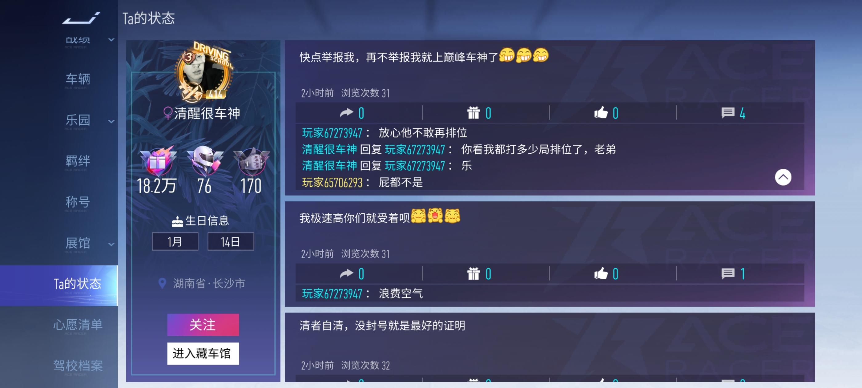 他很狂啊,说官方根本就不敢封他,说他是内部的人(可惜删了没截图),不是,官方这你还要纵容多久,赶紧的封了他,看着真膈应人#王牌竞速