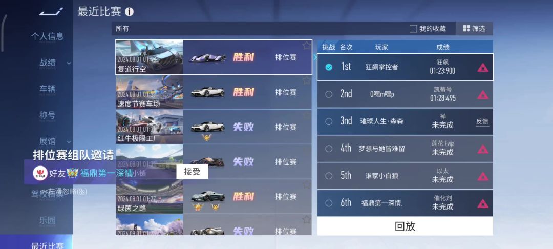你游外桂检测也是牛b了,车神局排到飞行员#王牌竞速