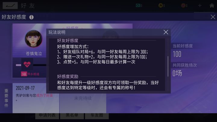 Hey,亲爱的车手,在速度节,你可以选择特立独行,当一位缄默的单人车手;你也可以选择广交好友,将“社交高手症”发挥到极致。赛场遇知己就仿佛伯牙与子期,为见证二人之间成为莫逆之交的过程,好友界面上线全新好感度系统,多种福利随好感度攀升而解锁。同时,西理还有一位新朋友要介绍给大家,想知道她是谁就继续看下去吧。好友好感度系统全新上线所谓幸运,不过林深时见鹿,海蓝时见鲸,梦醒时见你。全新好友好