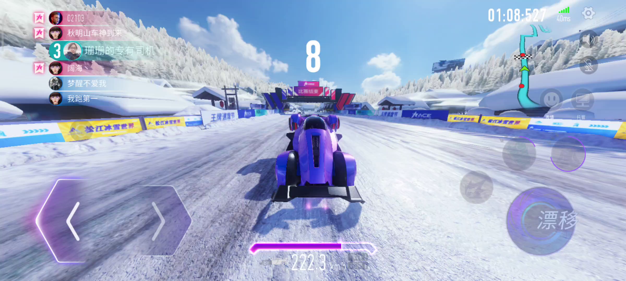 写几个比较关键的点 1.3个s弯尽量贴墙,能争取一秒是一秒 2.看了很多视频,视野浑浊那一断路,我在小弯道处用了一次漂移集气加速(涡轮加速会更好些,可惜没拉出来) 3.在到树之前漂移要达到超级涡轮并集满气(为落地后做铺垫)漂移抵达树的瞬间用掉技能(不点加速瓶) 4.后面的路段就自己熟练一下就好了,灵活使用之前驾照里面的技巧。