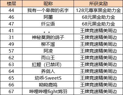 获奖名单:经核实,部分玩家存在提前占楼后修改的行为,故奖励顺序有所变动恭喜以上幸运车手中奖!~车手们可以在【个人中心—回复栏】查看自己的楼层数,另外西理会将奖励领取的方式回复在中奖楼层之中哦!(7日内没有联系工作人员视为放弃奖励)S8“飞跃童年”甜美到来,精彩有趣的赛季新内容已悉数上线!凶猛来袭的【复仇者】危险又迷人,更有太空神车【星际探路者】开辟星际新旅程,还可在“糖果岛”新赛道追寻童年