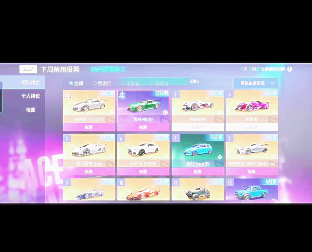 投票投的我是服,前几期就当凑热闹,但玩归玩闹归闹,这次确实过了,玩家被带节奏,都去投平民车,ban位的意义何在?那些本该进ban位的氪金车,恶心车都被放出来了,到时候又说什么这游戏玩不下去什么,我看就是自作自受!!!