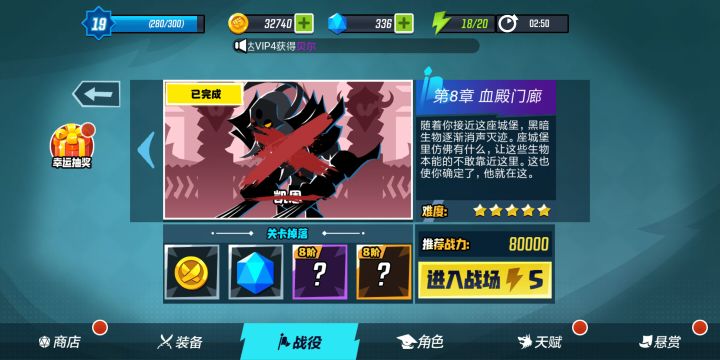 打了很久,感觉还是可以的,所以的关口都通了,但是去刷等级时,在去打第7.8关时,我一个破天一击就秒了,但是就是不会死掉,卡bug,希望该一下