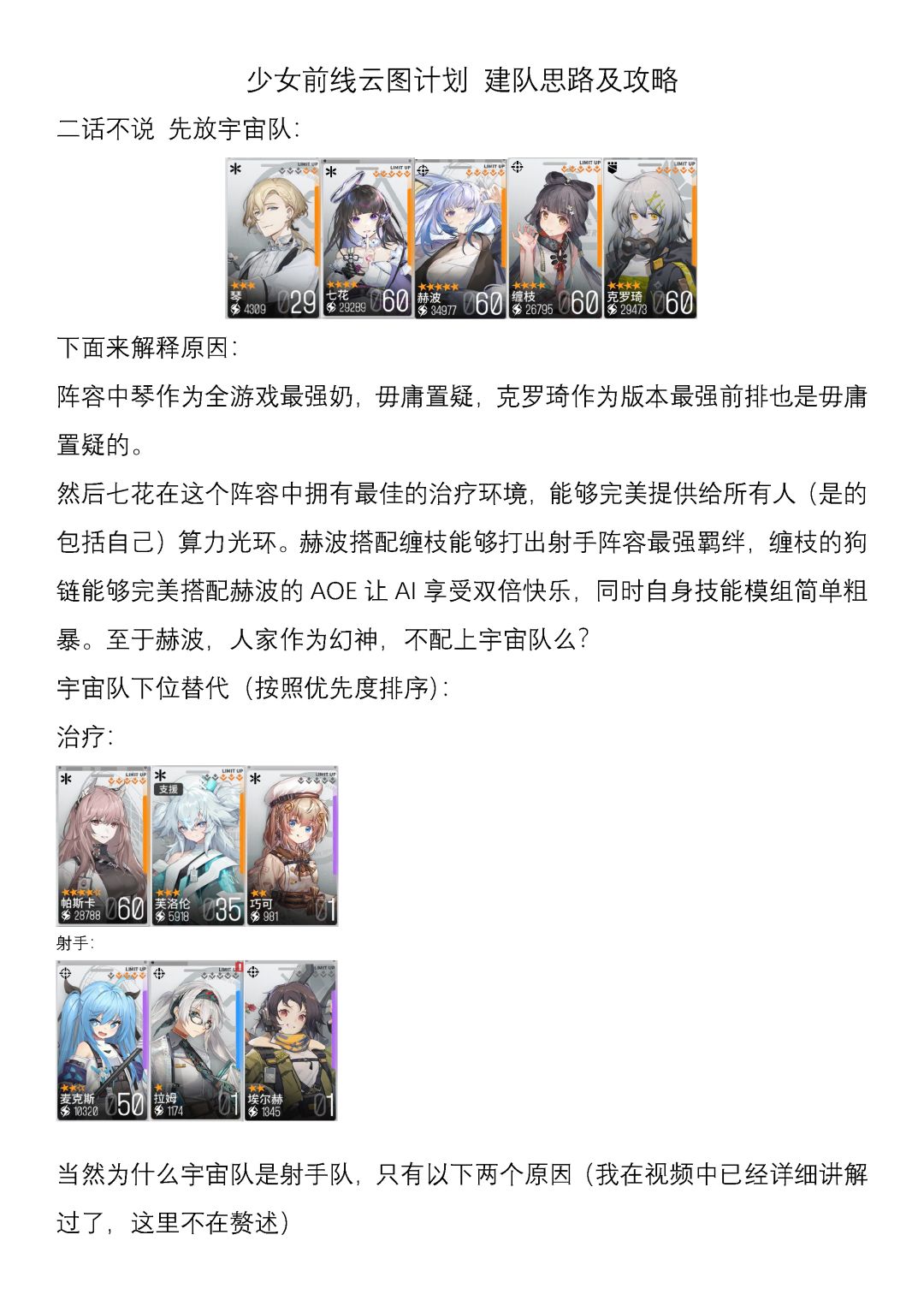 云图计划常用配队详解 有问题请回复,看到之后修改问题并重新发布 可露凯请跳转