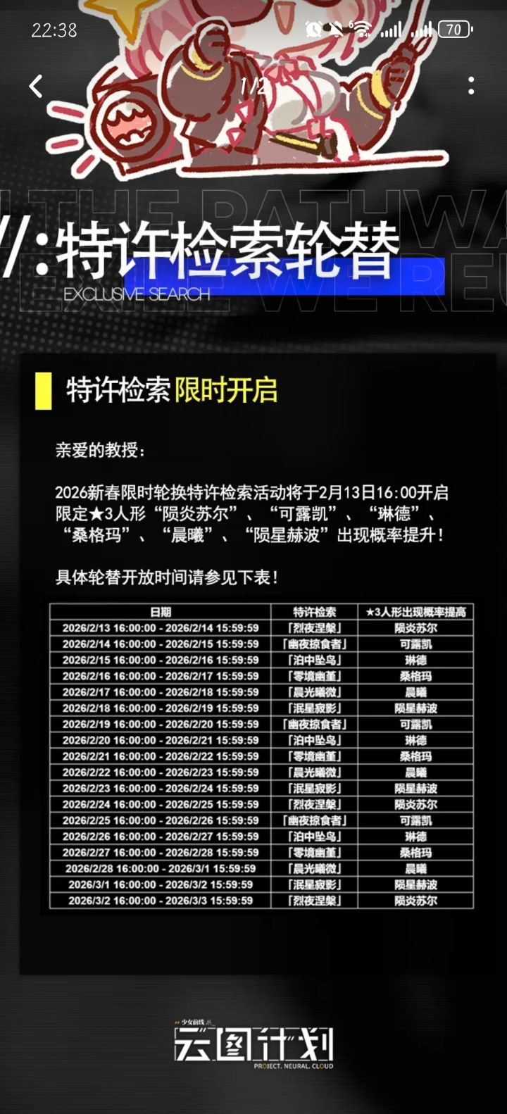 特许检索 · 「零境幽堇」于2月16日16:00 ~ 2月17日15:59、2月21日16:00 ~ 2月22日15:59、2月27日16:00 ~ 2月28日15:59限时开启!★3人形“桑格玛”出现概率将提升!详情请看下图