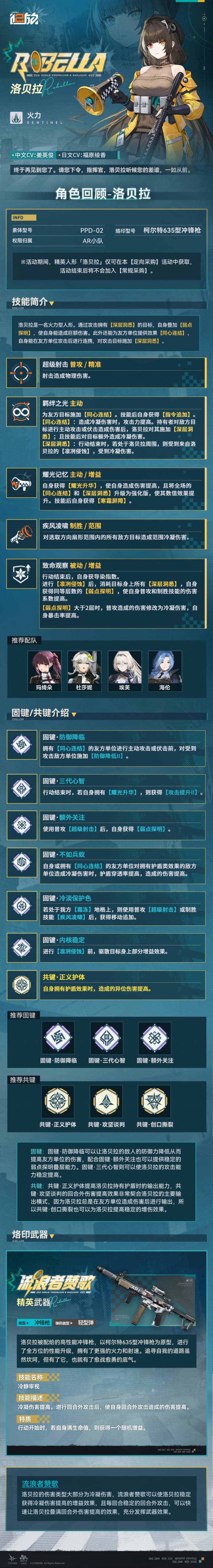「终于再见到您了。请您下令,指挥官,洛贝拉听候您的差遣,一如从前。」火力人形【洛贝拉】情报回顾详情请查看下图~————————-1月13日维护后精英人形【洛贝拉】限时开启【定向采购】。-【预演 · 洛贝拉】活动将与【定向采购】活动同步开启,完成试玩关卡即可领取相应奖励。#少前2 #少前2追放 #少女前线2