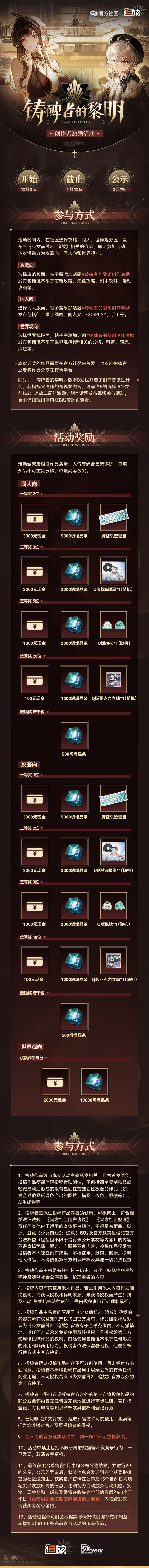《少女前线2:追放》2周年快乐! 非常感谢指挥官们一直以来的关注与支持! 在此时刻,制作组的代表们不仅带来了周年礼物,同时也有话想对指挥官说…… 最后,谨代表制作组各位成员向指挥官再次致谢。 #少前2 #少前2追放 #少女前线2 #铸碑者的黎明