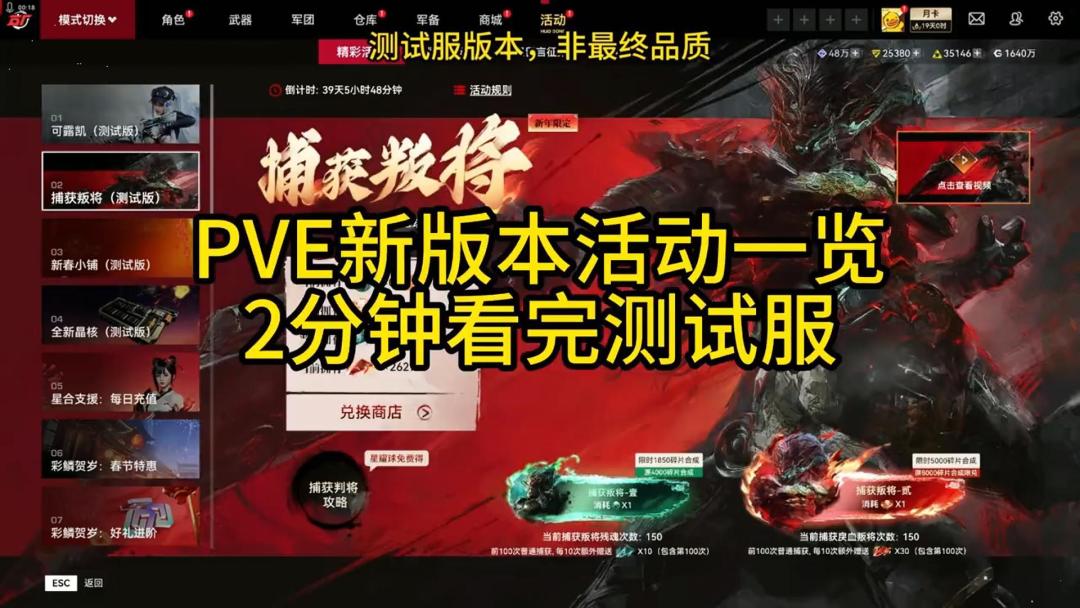 今日测试服新版本活动《速通版》!