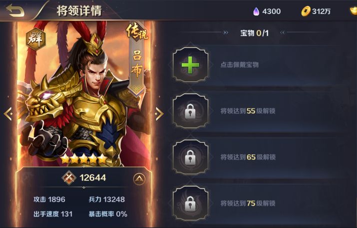 宝物主公级别达到45级就可以开放宝物玩法,之后需要武将等级达到要求即可开放对应的宝物格子,第一个格子将领45级开放,第二个格子将领55级开放,第三个格子将领65级开放,第四个格子将领75级开放。宝物可以在宝物商店直接购买,也可以通过西凉缭乱玩法获得,宝物的品质:白、绿、蓝、紫、橙、红,越考后的宝物能够提供的加成也会越高,宝物的星级:每个品质有5个星级可以提升升级流程:白-白1星-白2星-白3星