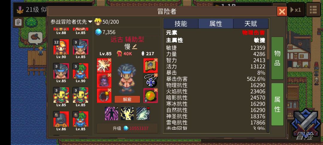都是星辰人物,加了游兵,利用紫烟来控制,并且降低敏捷,来提高村妇的输出,2000多层,效率还可以,40多秒可以一层。 装备的话,村妇参考B站上的视频,我没有刷到那么好的装备,就随便弄了几个。村妇主要就是敏捷堆高,暴击大于100,爆伤随意,物理伤害堆高,医疗回复提升堆高。主要依靠急敏的技能来增加敏捷,敏捷高了后,靠妖风技能打输出,持续的越久,伤害越高。普通攻击也不错,2000多层至少没问题。 其他几