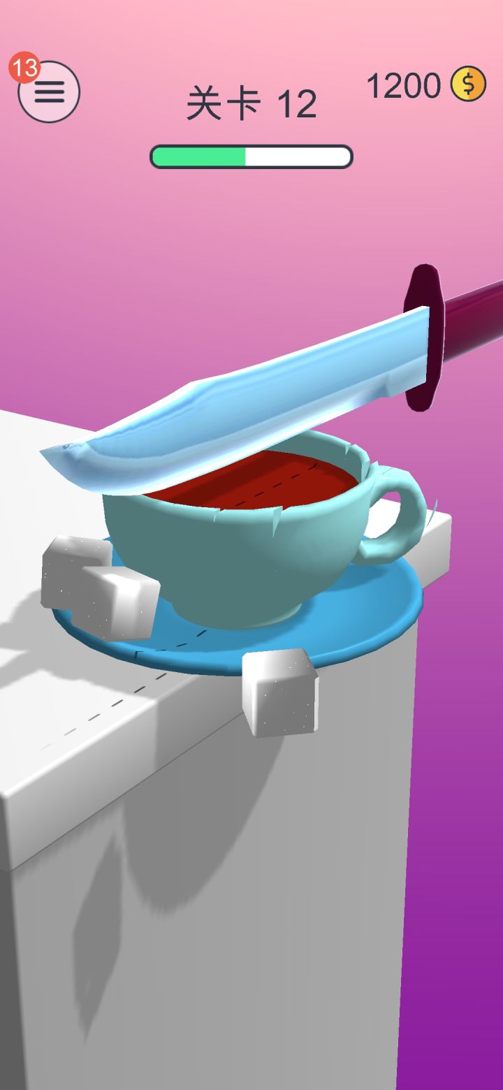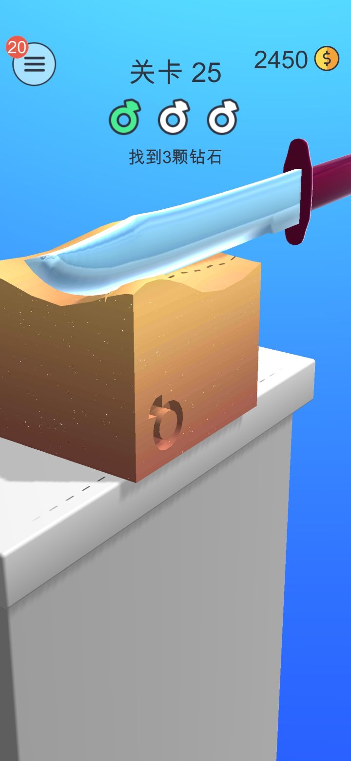 游戏有18把刀 每一把刀的音效不一样 目前刀具全解锁 最喜欢的是第二把刀 因为声音最小切感会更舒适 其次是第7把和第14把最像切动力沙的声音