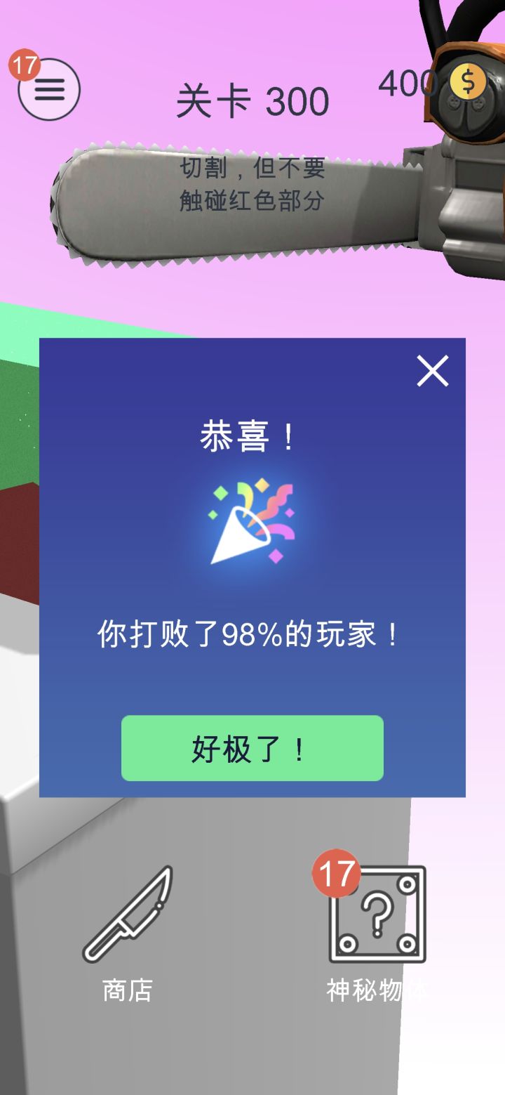 一共有18个神秘物体 神秘物体切割比正常关卡解压 但解锁后每个都需要看广告后才能切 切完后又需要看一个广告 就是36个广告 目前全部解锁觉得其中第二个最解压