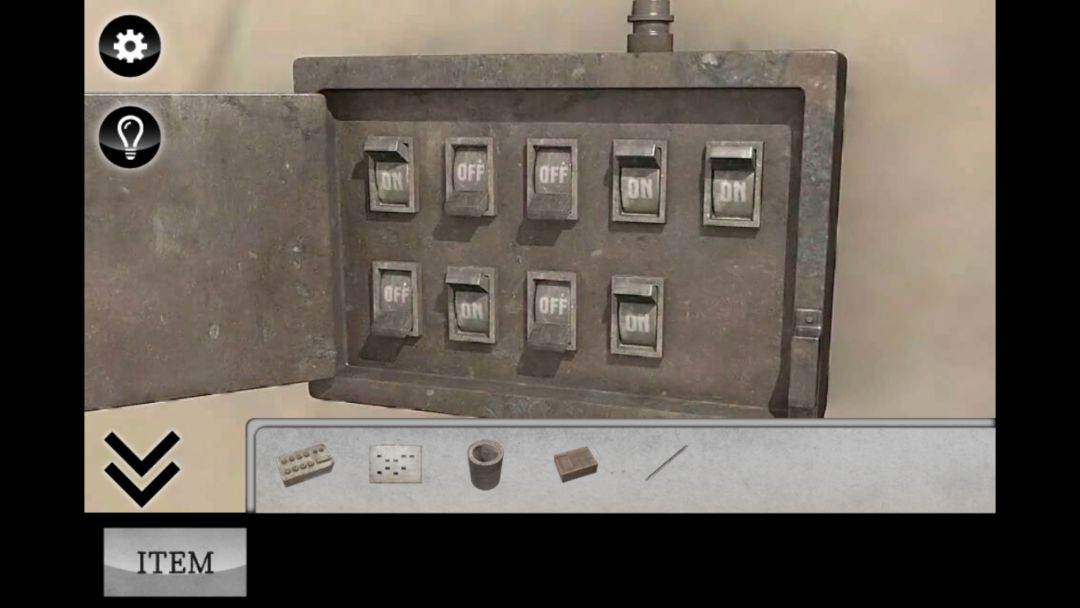 2.开关打开的灯和大门右下角的锁有对应,一楼一共八个灯,电梯上面还有一个,全部一共九个灯和锁对应